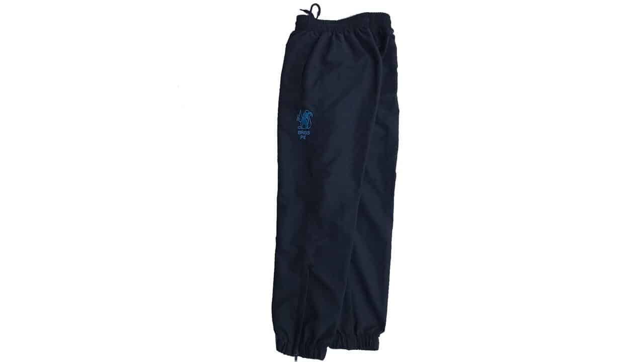 Home / Shop by School / Bacup & Rawtenstall Grammar School / BRGS Boys PE / BRGS Tracksuit PantsBRGS Tracksuit PantsFrom £21.00Embroidered with School badgeUnlinedToggled open hemFront and back pocketsOpen hem bottom with shock cord and toggleElasticated waist and draw cord100% Polyester microfibreSize Choose an option7-89-1011-13Large(34)Medium(32)Small(28/30)XS(26)Clear - BRGS Tracksuit Pants quantity + Add to basket SKU: N/A Category: BRGS Boys PE Additional information Additional informationSize7-8, 9-10, 11-13, Large(34), Medium(32), Small(28/30), XS(26)Related products BRGS Boys Sports Top From £20.00Bacup & Rawtenstall Grammar School,BRGS Boys PESelect options This product has multiple variants. The options may be chosen on the product page BRGS Training Pants From £21.00BRGS Boys PE,BRGS Girls PESelect options This product has multiple variants. The options may be chosen on the product page BRGS Pump Bag £8.99BRGS Boys PE,BRGS Girls PEAdd to basket Navy Football/Hockey Socks £5.50BRGS Boys PE,St Gabriels Boys PE,St Gabriel's Girls PE,SocksSelect options This product has multiple variants. The options may be chosen on the product page